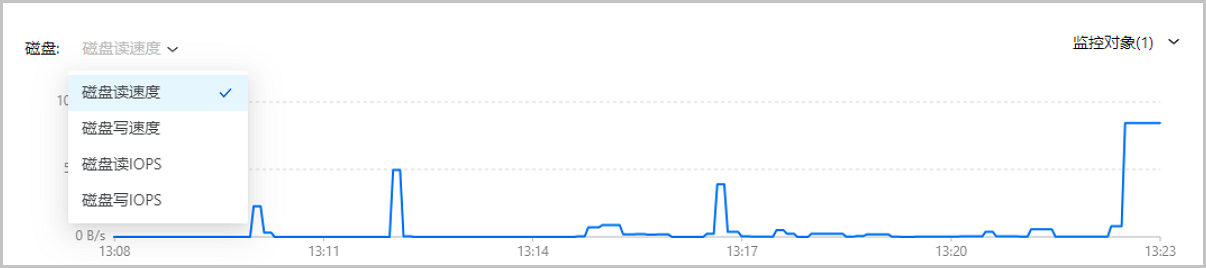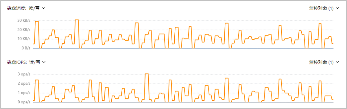 原磁盘监控图表拆分为磁盘速度和磁盘IOPS两个图表,每个图表支持同时展示读/写两个监控项,用户可在一张页面上同时查看多项磁盘相关数据。