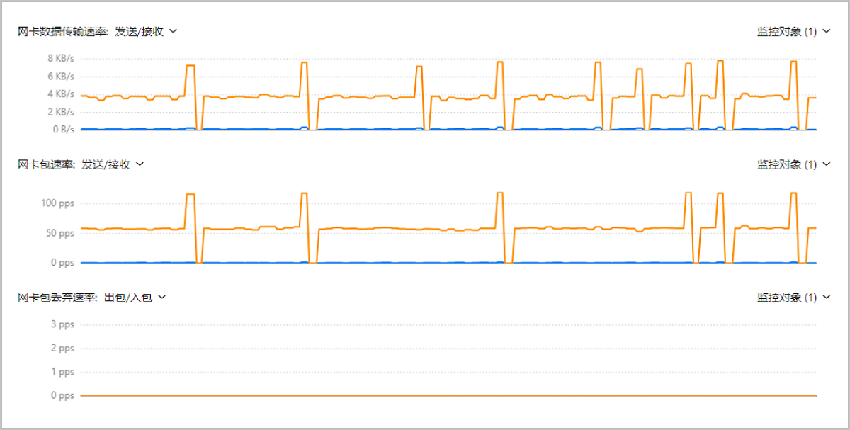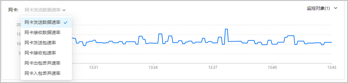 原网卡监控图表拆分为网卡数据传输速率、网卡包速率、网卡包丢弃速率三个图表,每个图表支持同时展示发送/接收(出包/入包)两个监控项,用户可在一张页面上同时查看多项网卡相关数据。