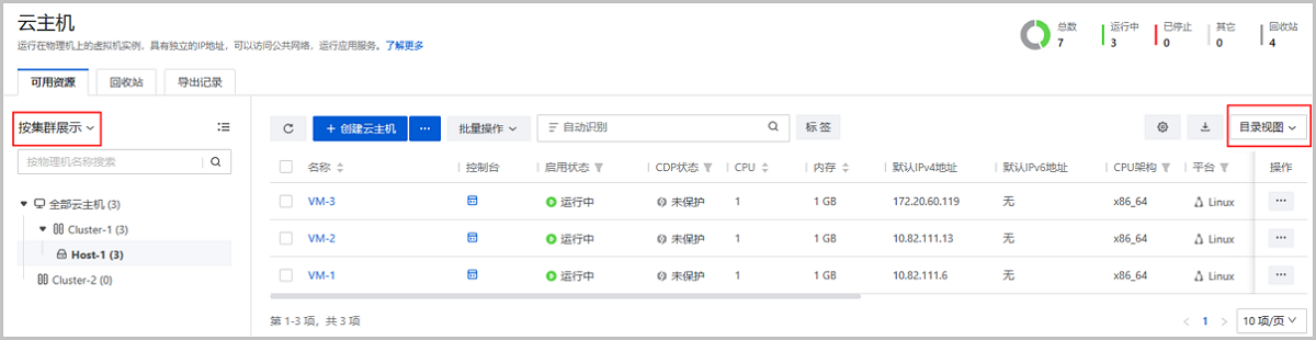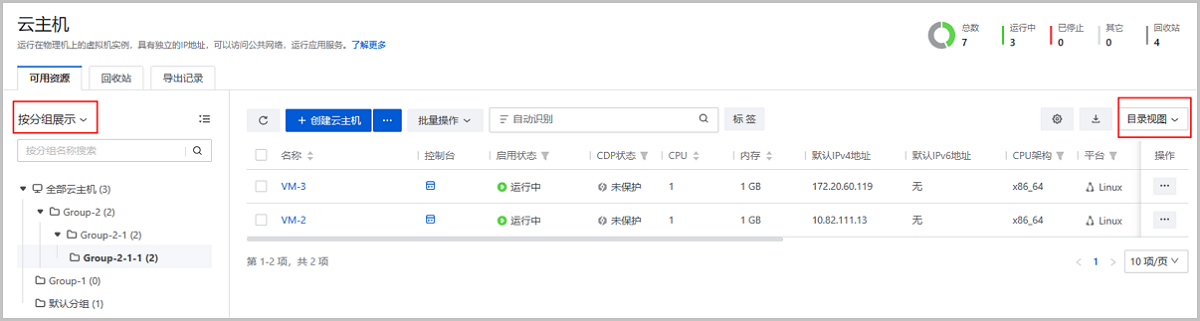 由于云主机支持目录视图,基于云主机创建关联资源时,云主机选择列表支持按目录筛选 (按集群按分组),用户可快速定位目标资源,提高操作效率。