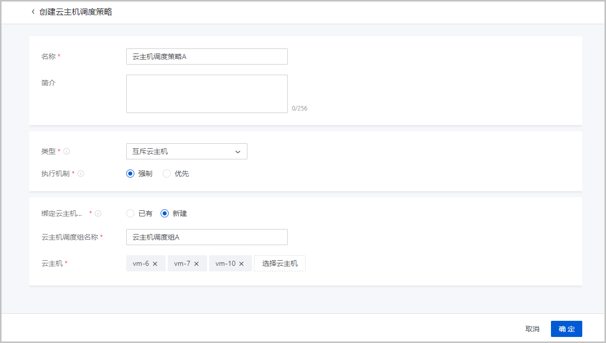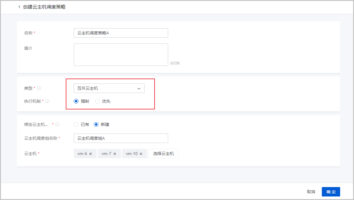 图 3. 创建云主机互斥物理机 (强制) 调度策略