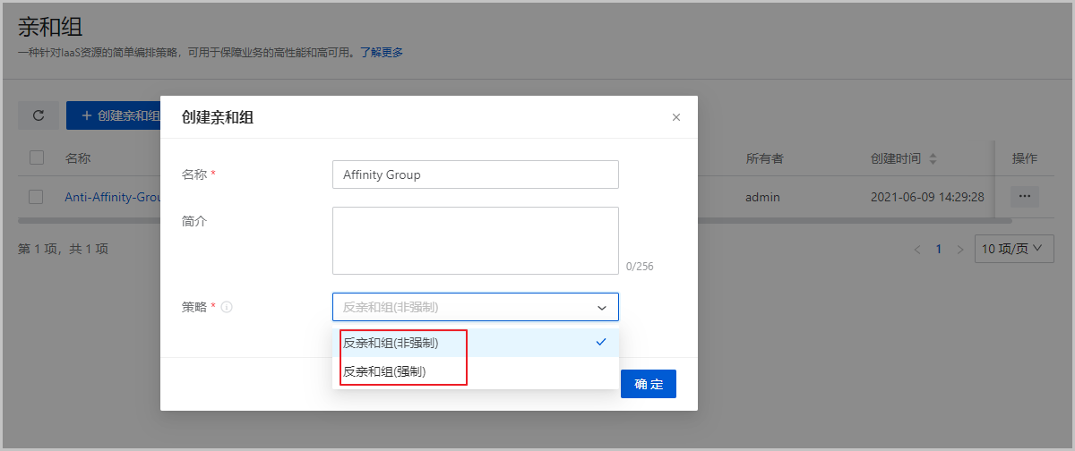 图 4. 创建云主机亲和物理机 (强制) 调度策略