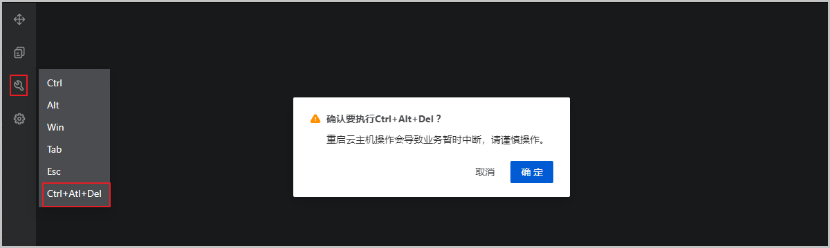 云主机控制台操作组合键Ctrl+Alt+Del新增风险提示,规避误操作