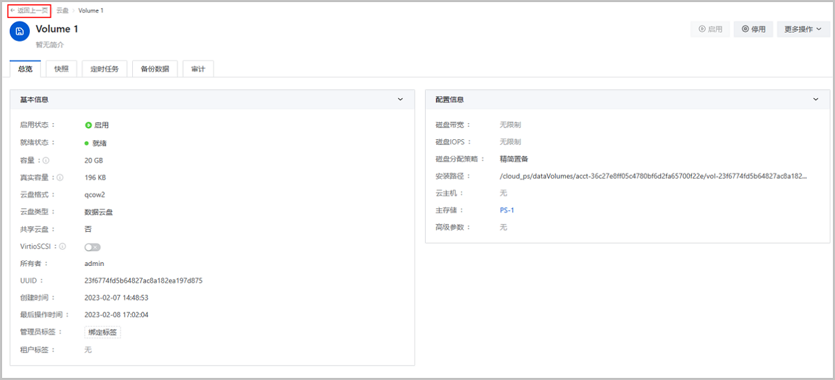 在之前的版本中,从资源详情页返回主列表时,默认回到资源主列表初始状态。ZStack Cloud 4.6.0开始,进入资源详情页后,面包屑路径新增返回上一页,支持返回资源主列表时保留之前的过滤/搜索结果和所在标签页,避免过滤/搜索条件重置,提升资源浏览流畅性。