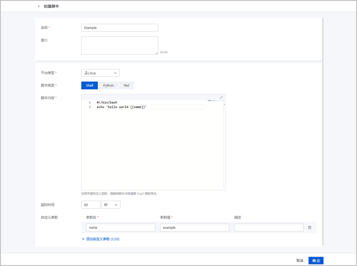 在ZStack Cloud主菜单,点击。在脚本库界面,点击创建脚本,弹出创建脚本界面。