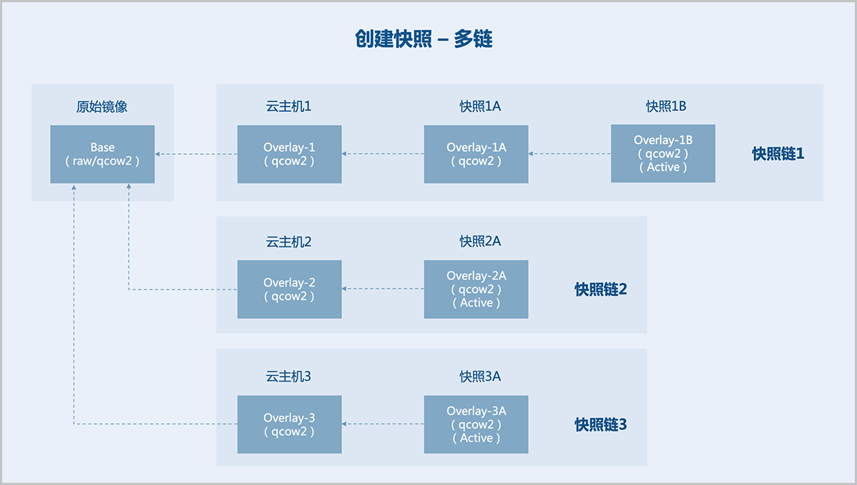 • 基于backing file创建多条快照链。