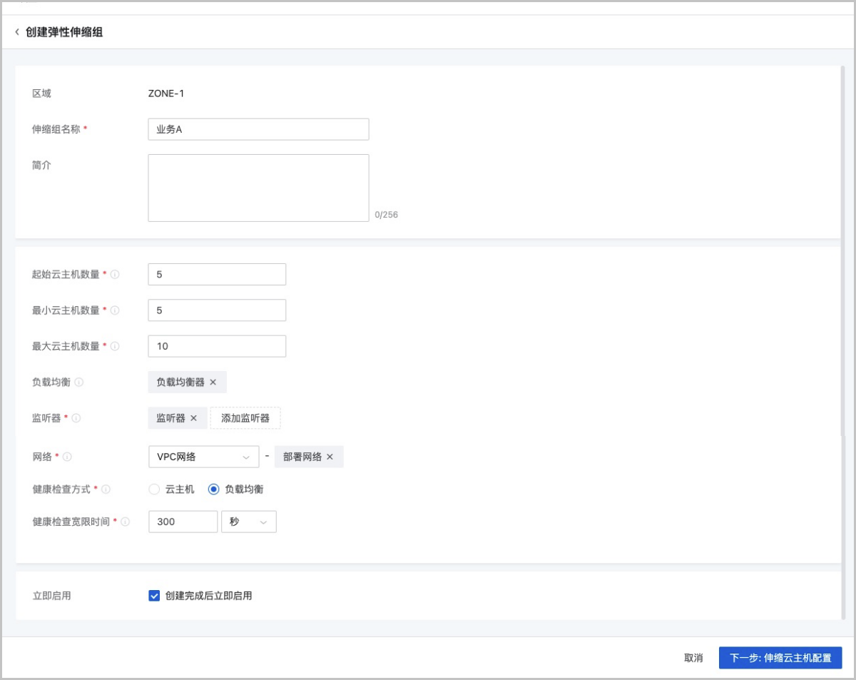 • 立即启用:选择是否创建后立即启用弹性伸缩组,默认不立即启用。