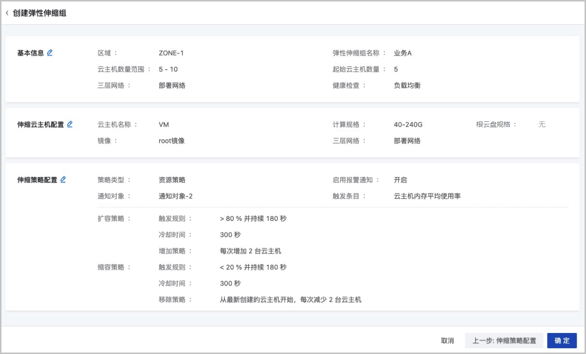 说明: 目前支持VPC网络和扁平网络场景的云主机弹性伸缩。