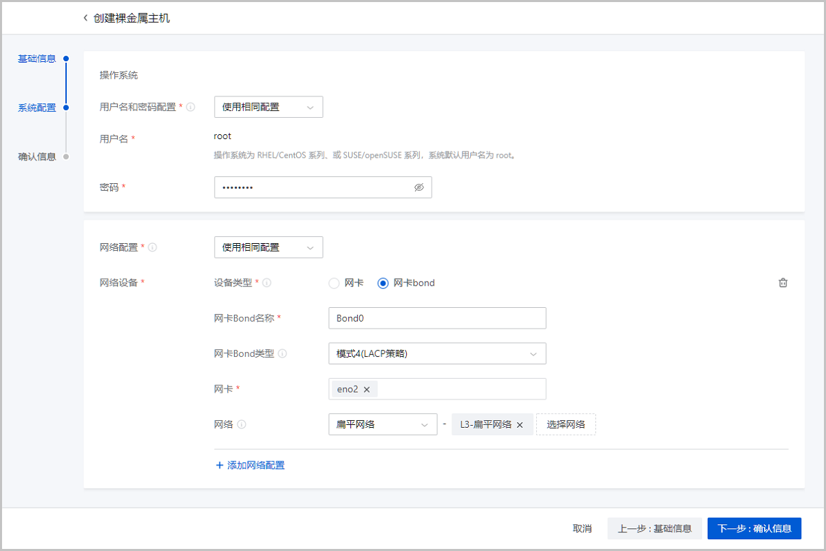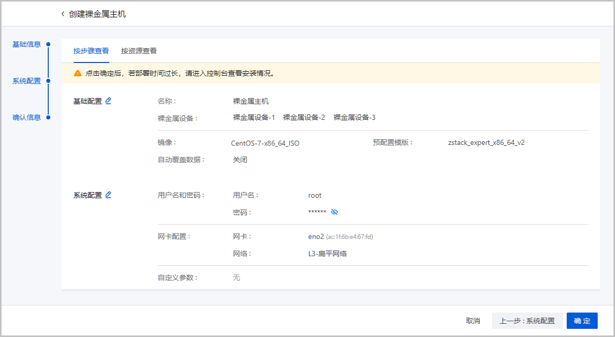 在ZStack Cloud主菜单,点击,进入裸金属主机界面。点击创建裸金属主机,弹出创建裸金属主机界面。