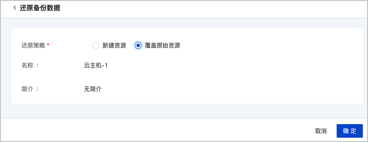 在ZStack Cloud私有云主菜单,点击,进入本地备份数据界面,点击,进入还原备份数据界面。