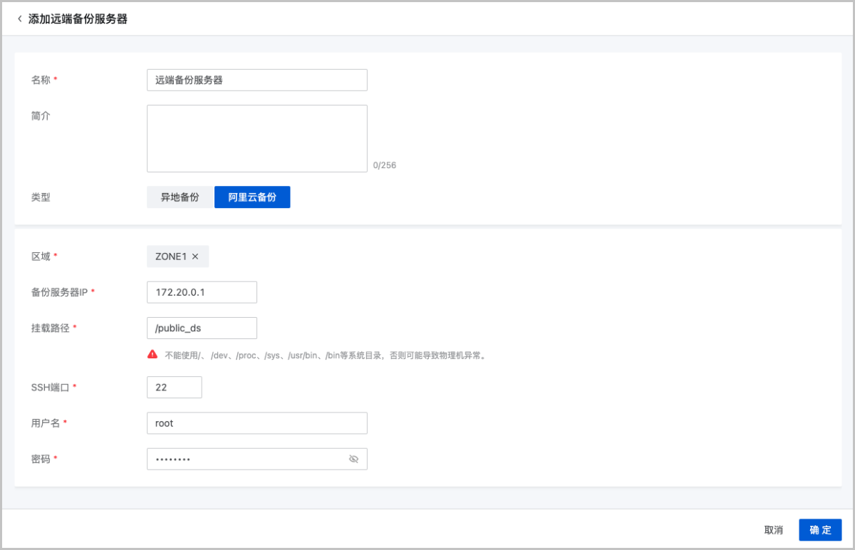 | 公有云备份服务器 | 配置信息 |