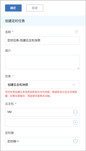 • 创建定时任务 | 创建云主机快照:基于设置的定时任务策略,对云主机根云盘周期性创建快照;