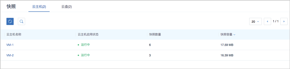 • 查看云主机快照容量:查看云主机根云盘的所有快照总容量,以及云主机快照树中单个快照节点容量;