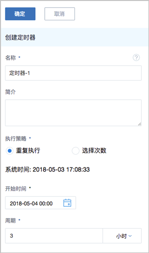 • 周期:设置定时器执行周期,单位包括:分、小时、天