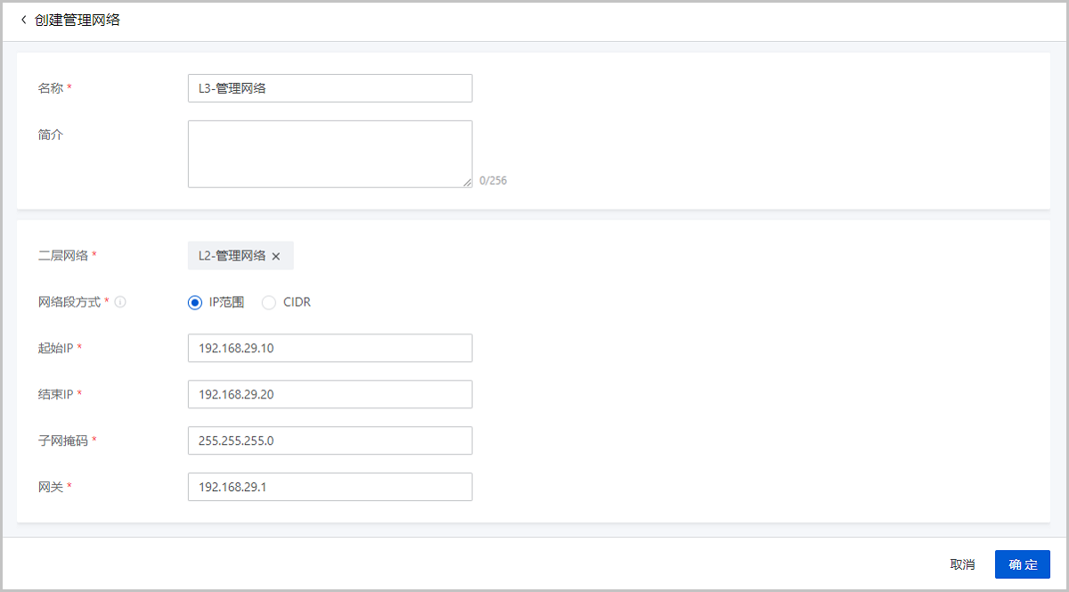 | 管理网络 | 配置信息 |
