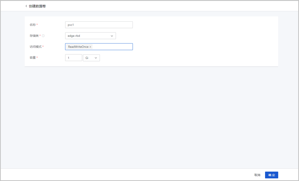 • 存储类:选择创建数据卷使用的存储类(StorageClass)